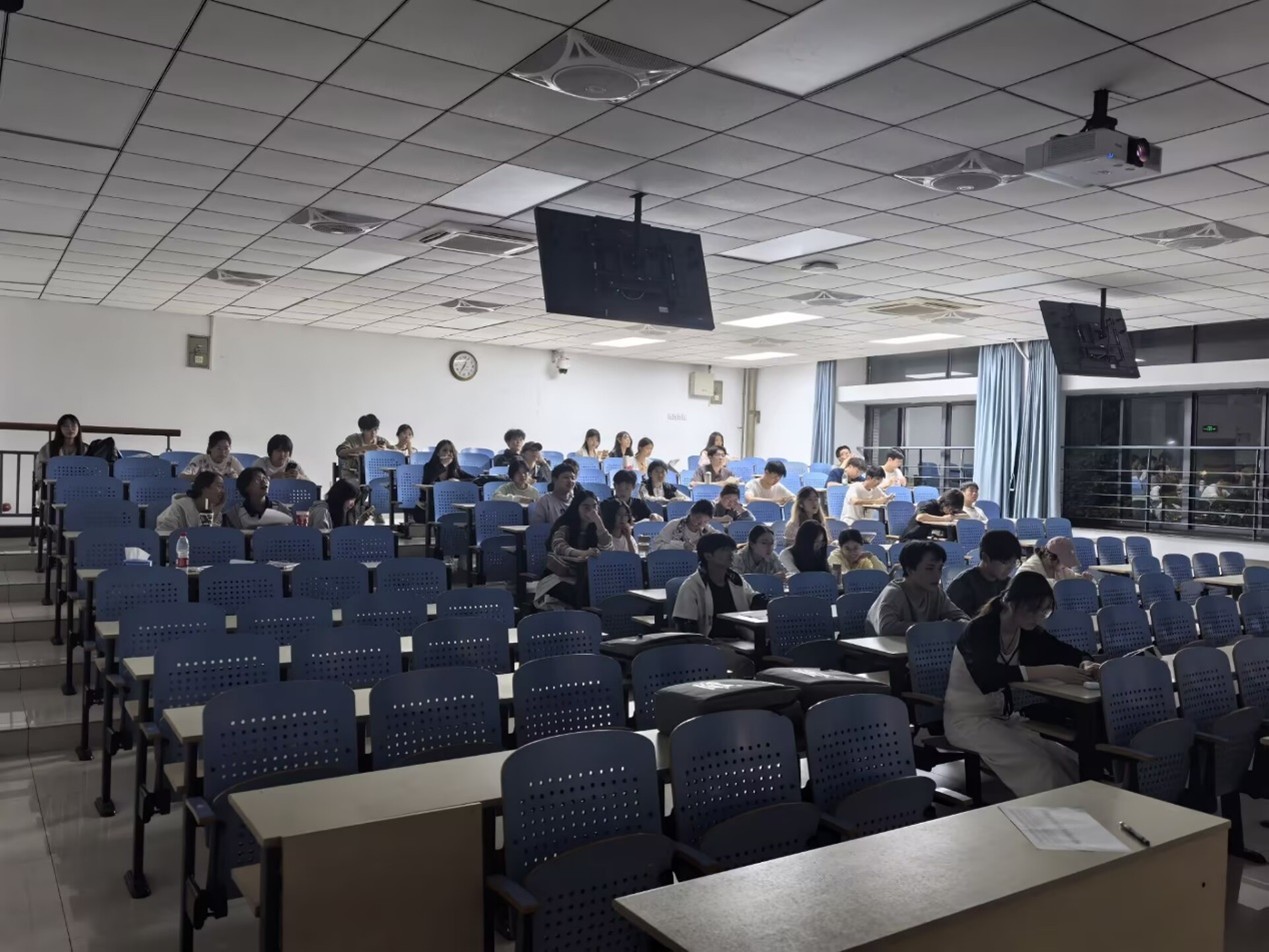 2025年9月27日晚,中国矿业大学南湖校区博学楼1号楼内灯火通明,环境与测绘学院青年志愿者协会励行部在此成功举办“观红色光影·承两弹精神”主题观影活动。作为2025年大学生“两弹一星”精神志愿宣讲活动的重要一站,本次活动特别选取传记电影《钱学森》,通过展现这位:“两弹一星”元勋的传奇人生,让青年学子沉浸式感悟科学家精神的内涵与力量。