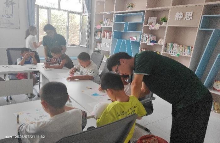 在新疆库车,实践团与友谊社区合作开展 “普通话进社区”系列教学活动,以儿童为切入点,采用“情景模拟 + 游戏互动”模式,通过角色扮演、绘本共读融入日常场景。