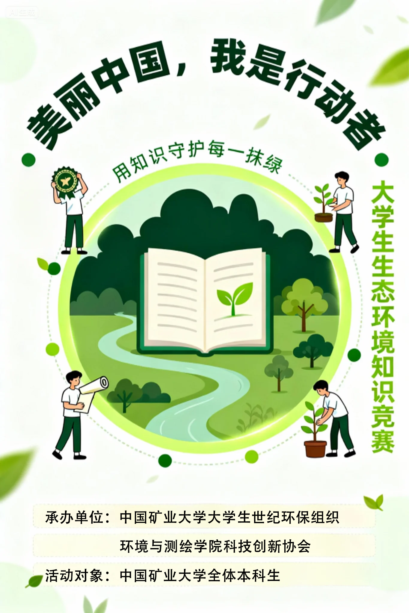 为普及生态环境保护知识,增强青年一代的环保责任意识,11月9日下午,第六届“美丽中国,我是行动者”江苏省大学生生态环境知识竞赛——中国矿业大学初赛在南湖校区博学楼1号楼C101成功举办。