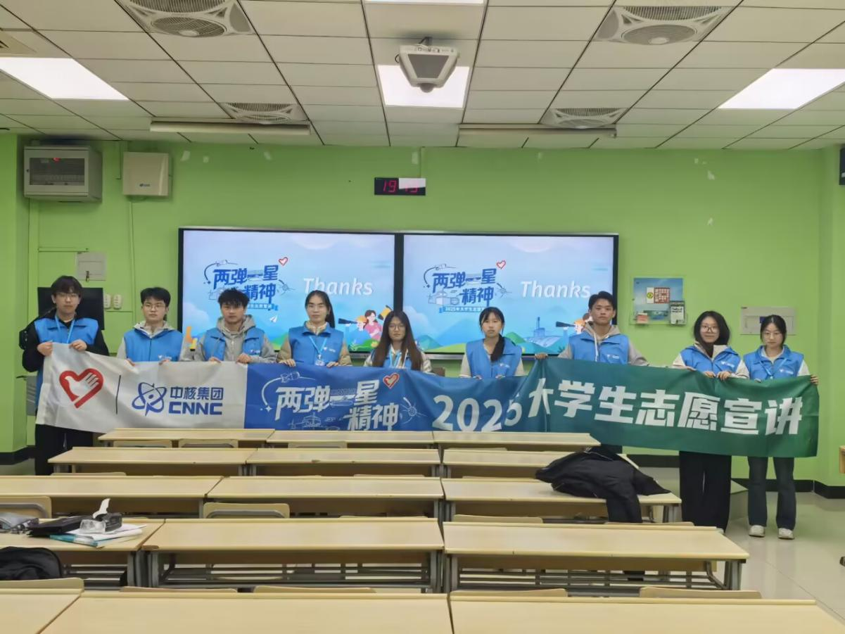 活动前期,环测青协精心统筹筹备,组建专项工作小组推进各项事宜。11 月 11 日至 12 日,主办方通过 QQ 空间动态、志愿者招募群等多渠道发布活动信息,详细介绍宣讲主题、流程及志愿时长规则,并搭建活动专用群,方便后续通知发布与沟通对接。11 月 13 日报名通道正式开启,工作人员在群内发布报名收集表,明确 49 人参与限额,同学们响应积极,报名当日即满额。报名截止后,负责人第一时间在群内公示成功名单,确保活动流程公开透明,为后续开展筑牢基础。同时,宣讲团队通过查阅历史文献、梳理影像资料、请教思政老师等方式,系统整理 “两弹一星” 事业的历史背景、关键节点与先辈事迹,将复杂内容转化为条理清晰、通俗易懂的宣讲素材;工作人员提前确认活动场地,检查调试影音设备,预留应急座位,备好纸巾、饮用水等应急物品,全方位保障活动顺利进行。