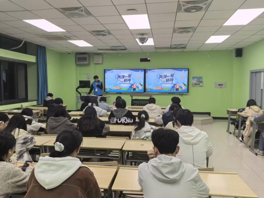 2025 年是我国第一颗原子弹爆炸成功 60 周年,“热爱祖国、无私奉献,自力更生、艰苦奋斗,大力协同、勇于登攀” 的 “两弹一星” 精神,是中华民族在艰难岁月中铸就的精神丰碑,更是新时代青年砥砺前行的力量源泉。为引导青年学子铭记峥嵘历史、传承红色基因,11 月 14 日,中国矿业大学环境与测绘学院青年志愿者协会在南湖校区举办 “一星耀九州・精神永传承” 主题宣讲活动,49 名环测学院学生齐聚现场,在系统学习与互动交流中感悟精神伟力、汲取奋进动能。