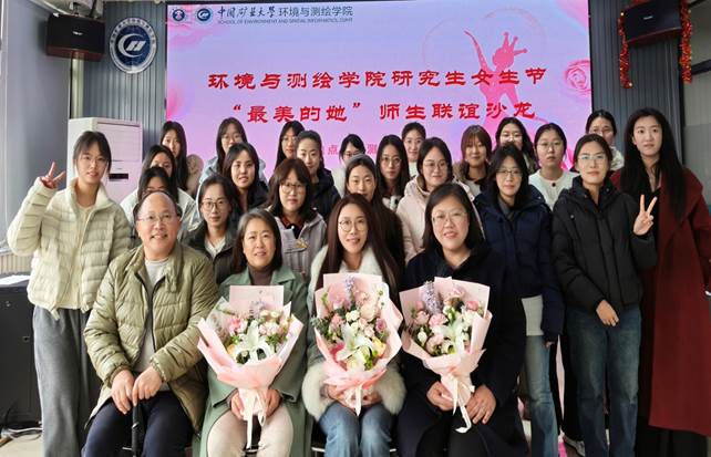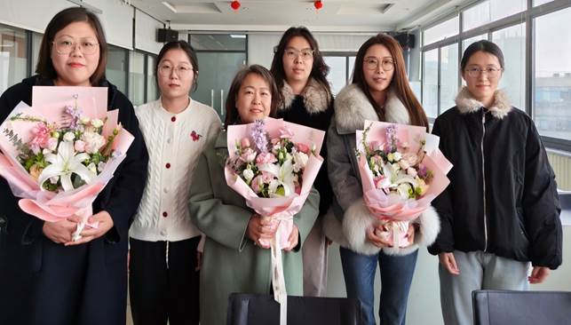 活动伊始,杨政军老师作开场致辞:“最美的她”,就在我们身边。举办这场师生联谊沙龙,就是为了让这份美流动起来,在分享交流中看见彼此的光,在思想的碰撞中收获启迪,在真诚的沟通中加深友谊,汲取前行的力量,行稳致远!代表学院学工队伍向学院全体女老师、女研究生送上最诚挚的节日问候和美好祝愿! 随后,学生代表向三位女老师献上鲜花并合影留念。