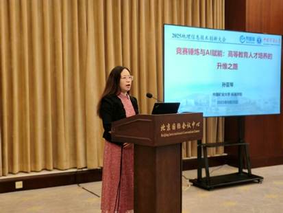 我院遥感与地理信息科学系副主任孙亚琴老师应邀参加了大会,并做了主题为“竞赛锤炼与AI赋能:高等教育人才培养的升维之路”的分会场报告。报告主要内容包括:“以赛促学、以赛促教、以赛促创”的双创人才培养进路、专业知识融合AI+课程链构建、专业竞赛趋势与成果分析。报告在会场引起了积极反响与热烈讨论交流。