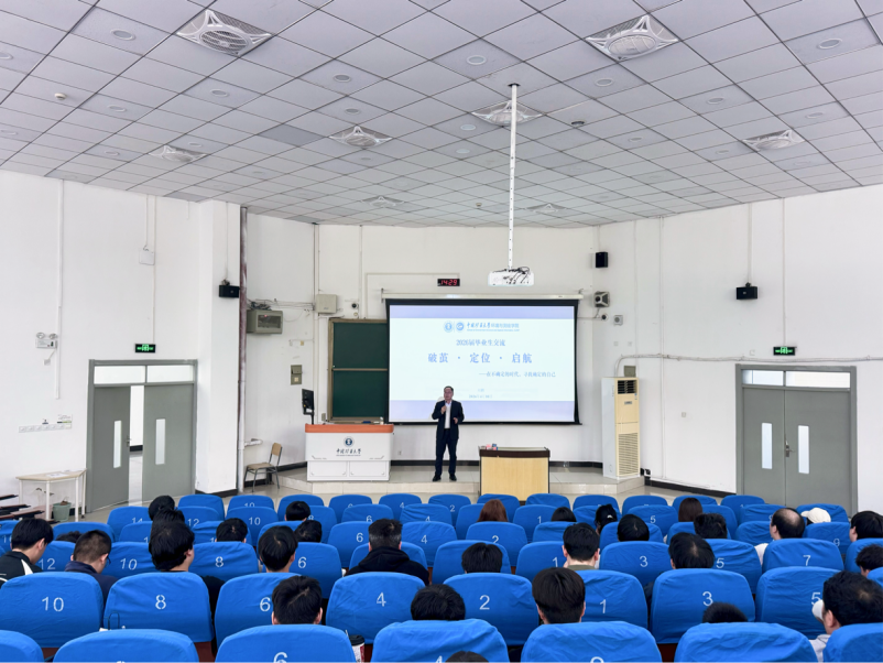 本次讲座主题为“破茧·定位·启航——在不确定的时代,寻找确定的自己”。讲座围绕破对立扩认知、认识自己、学科方向、备战春招展开。刘鹏分析了时代背景与就业形势,解读学院各专业就业数据与行业前景,并就春招求职、简历制作、面试技巧与心态调整等方面对毕业生进行指导。他回顾了毕业班同学在校期间的学习成长历程,对同学们四年来的努力与收获给予充分肯定,并表示,毕业既是校园学习生涯的终点,更是人生新征程的起点,希望毕业生坚定学科自信、脚踏实地、终身学习,在新时代找准定位、顺利启航。