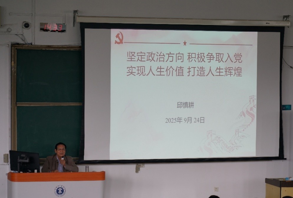 9月24日,为引导广大新生坚定理想信念,增进对党的认识和感情,扣好大学生涯的“第一粒扣子”,我院关工委常务副主任邱慎耕为2025级本科新生讲授入党启蒙教育课。